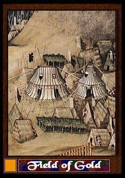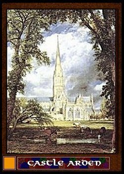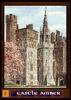 The second card is the courtyard of Castle Amber herself. It is by far the most commonly used trump in the deck since it delivers the weary traveler into the bosom of felicity itself. Of course the first thing one notices upon arriving is that a dozen pointed archery weapons are trained tightly on you. Ranging from the new repeating crossbows, the cloth yards of yew longbowman to the sinister clockwork ballistae Random uses to punch holes in iron-shod ships; the armed array is impressive. Additionally, a cool company of the most unfriendly faces to ever walk the last mile of a death row prison hold a collection of pointy and edged armaments to greet the visitor who arrives with less then friendly intentions. Sorcerers with very little pity back them for security.