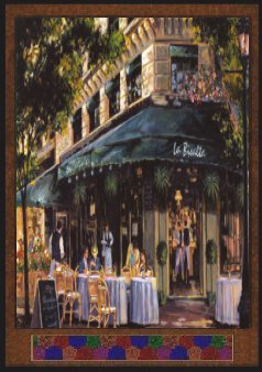 The eleventh card is another of the Diners of Amber that seems to have Random's recommendation, and grudgingly my own. Lou's Market has the best fish available. Something Amberites have a hard time admitting. They serve great food in a to-go market, or you can sit at the counter and dig in there. No fancy tableware just chipped plates and paper bags. Just bowls to wash your fingers and rags to dry them off. There are jars of condiments so vast that a chef might forget the fish and just sample custom mustards, salsas, sauces, dips and salad dressings. Are you interested in getting 10 pounds of heavenly batter-fried fish and a jumbo box of wedge fries, with malt vinegar, salt, and homemade tarter sauce? Lou's is the place. There is a park across the street, usually crowded with people, families, ball-games, and picnickers under a nearly always warm and sunny sky. Even the rain is warm and pleasant.