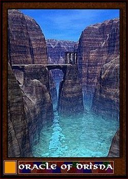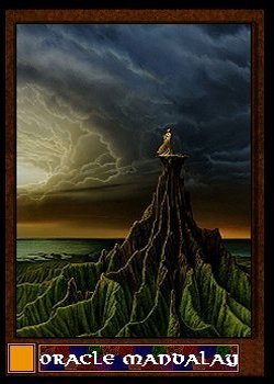 This Oracle was once a powerful oracle near the Chaos Sway world of Gknfhnismznup and the vale that contained Ygg. Don't expect me to pronounce it. I called it Guknup. When the Mark of Mandalay was created the world was swept up in the forces of creation and purified. Now this pinnacle created by ugly forces of erosion rises above a newly verdant world. Above it swirls a constant series of clouds in a speedy succession of rain, thunders, clear, fog and stormy lightning. Cast your question into the wind and live with your results. You have been warned.