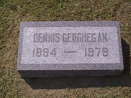 ...found in Richland Center, Wisconsin, whose names are unknown to me. If you know of this Geoghegan family, please email me. It's interesting to note that there was a lone female buried near the family stone.