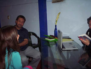 Juan Carlos Iracheta, la autora, Bernardo Martínez y Francisco Flores Figueroa en entrevista para