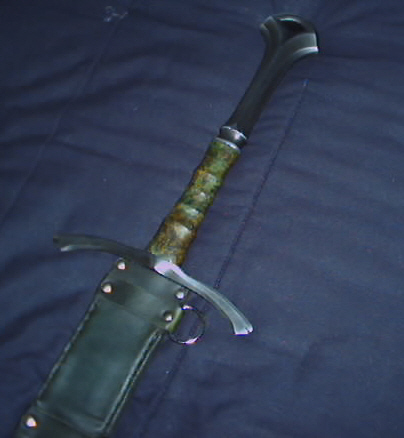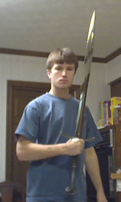 | This sword was Designed by John and myself. It is Highly Influenced by several swords seen in the Lord of the Rings movies which where made by Peter Lyon. This sword features a 31" long blade and a 12" long hilt. |