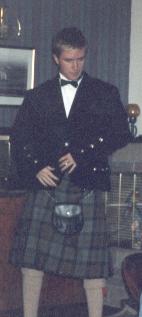 Ok , Enough people make fun of me for being "the Scotsman" I might as well prove them right!!. Here is the ONE AND ONLY Picture of me in a kilt. This was taken in a pub that is located very close to Culloden battlefield. The guy that owned it was named Chris. Every tour group that came through, Chris would dress particular people up in scottish regalia for laughs. Well our tour guide thought i was pretty amuseing because I was the younger person on the tour, and he suggested to Chris that they choose me!! lol well, there I am, and yeh, that kilt was pretty big on me, it was about to fall off! Coincidently the tartan on the kilt is actually antique MacLeod! |