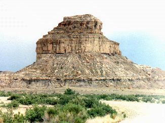 | Fajada Butte, at the eastern end of Chaco Canyon. Home to petroglyphs which might have astronomical alignments. There is speculation that alignments influenced the location of the structures of Chaco Canyon. |