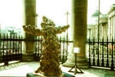 by Pierre Rouve The tormented tension of Doru Marculescu' s Crucifixion is bound to stun Western eyes prone to assume that only dispassionate elongated verticals befit the sacrificial spirituality of the Cross. A time-honoured metonymy transfers on to the tool of torture the divine essence of the tortured and calls for strictly regulated reverence. Even beyond the religious divide sanctioned by the Council of Niceea in 321 such turmoil of contorted curvilinear flesh may be seen by some as a slur on the creed of sculptor's cultural compatriot, the Moldavian Paissie Velichkovsky who, hand in hand with the Russian Dimitri Rostovsky heralded the transdanubian resurgence of the Orthodox mystical theology of Byzantium culminating in the profound meditations of our quasi contemporaries Solovyov, Berdyaiev and Shestov. Nothing could be further from the truth in this startling Cross. The roots of Marculescu's turbulent techne rhetorike plunge deep into a fundamental canon of Eastern Orthodox Christianity perpetuating the scorn which Genadios Scholares pours on all "beast-like humans". And yet precisely this congenital bestiality of all men spurs the Son of Man to die for their Redemption. This is why the Romanian sculptor shuns the apatheia of the conventionally paradisiacal Cross and glorifies Christ by baring the impurity inherent in a heap of decaying flesh. In this intuitive revival of an ancestral conviction the flowing undulating lines and blown up volumes which Western Baroque fancies had reduced to mere decorative arrangements of dumb drapes regain a long lost metaphysical consistency and flare up with renewed eloquence equally valid on both sides of the confessional divide. And indeed had not Henry Vaughan written that "all flesh is clay " and had not Donne sensed its "sinuous threads "? And yet this fearful mass of mercilessly moulded mortal flesh is far from being a genuflection for the greater glory of evil as Dualist Bogomil heretic and neurotic German Expressionists would have seen it. For Marculescu God is not dead because we all are "children of light " (Luke 16.6). This glimmer in the "secretissima nox " preceding our Redemption reveal the coalescence between the spiritual intent and visual utterances of Marculescu mirroring St. Augustine's outcry: "My heart is anguished ". That is why, for all its limitations, this three dimensional theology remains constantly convincing. This unfashionable and perhaps unfathomable "Crucifixion" surges in the artist's private Purgatory.
