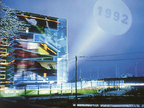 | While, with the imminence of a united Europe, each city positions itself by claiming - and if necessary constructing - maximum centrality, Karlsruhe is Europe's geographical middle, a condition it can therefore afford to ignore. It prefers the oblivious pose of "typical West German city at the end of the 20th century." Its citizens serenely inhabit the baroque idyll of their reconstructed townscape, united in their determination to resist unpleasantness from wherever it may come. It matters little that, like each historical city in Europe, their town has been thoroughly modernized: on top of a new parking garage, its train station is being extended to receive the IDZ, Germany's slower equivalent of the French TGV. Surrounded by twenties Seidlungen, suburbs, shopping centers, and other centers, and other emblems of the non-hierarchical world, the city is dwarfed by its own perifery. But conceptually its 'heart' will always remain the center: Kaiserstrasse, its main pedestrian shopping street; townsquare; Schloss; university; the surrounding Walder.