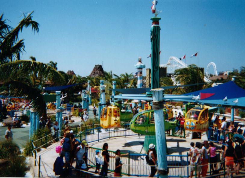 Cartoon Network Cartoon Beach is Seaworld's newest (and only) themed area. Its for the kids, and features 6 attractions, including the Air Born Barrel Brigade, Woody's Beach Trucks, Air See Rescue, Dexter's Time Machine, Toon Point Lighthouse and the Coca-Cola Carousel.
