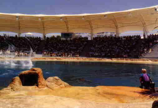 | One of the world's most stunningly attractive theme park attractions. Seaworld's Dolphin Cove is a tropical paradise, with tropical plants, sandy bottom lagoons, and home to one of the most beautifil animals on the planet, the pacific bottlenose dolphin. So what is dolphin cove? Well, its a 20 Min dolphin show, which displays the grace of these mammals. Seating is plentiful in the 2,500 seat stadium, and some 2,000 of these in the shade. The show is of high educational value, and for that reason the show interesting as well as visually stunning. The Facility that is dolphin cove is not just one pool, but a series of 7 pools, including vet pools for any dolphin that may require veterinary care. Dolphins at Seaworld have been known to live till the age of 50, and Seaworld currently has a 100% succuss rate for baby dolphins. A truly uplifting experience, and one defiantly not to be missed if at Seaworld. |