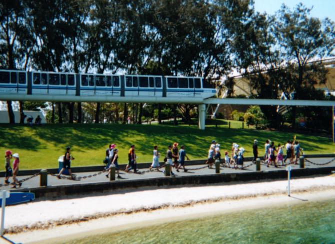 | The Seaworld Monorail System is Australia's first. It features Three Stations (Main Station, Mid Station, and Seaworld Nara Resort Station) on its 2km track, and three 96 seat capaicy trains. Attendence at Sea World increased 35% in the first four months of installation in 1988, and it is the most expensive ride built at any Australian Theme Park to date, costing Seaworld $3,000,000 ($3 Million) in 1988. |