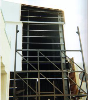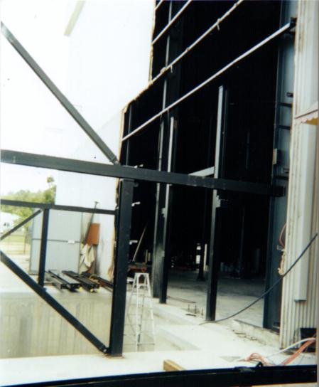 | The photo above shows a section of the building, which the ride will be housed in. If you look carefully to the left of the photo, you can see part of the track and support structure. |