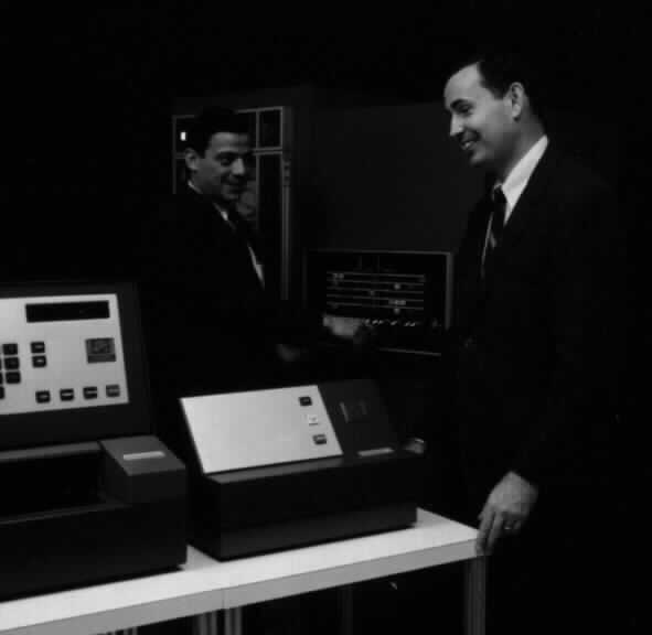 2. The fellow on the left, Pete Rosa, is responsible for the names DCOS and AIDE (AIDE is not meant to be an acronym Pete said look in the dictionary. The meaning is "an assistant"). He also had a beautiful blue new '67 or '68 Thunderbird that received a hand-painted rally stripe by some mischievous "friends"(?). Ask Craig Benjamin, who was not involved, how he got punished for it. Also an ex-GE Computer Dept refugee. 3. Give the fellow on the right, Don Birmingham, the credit for the overall system architecture. While he was a manager in the Engineering Dept. in late '65/early '66, he did the logic design for the first production 1204. Later was a VP. The 2nd ex-GE Computer Dept refugee to arrive at DPI.. Bill Bridge was the first. |