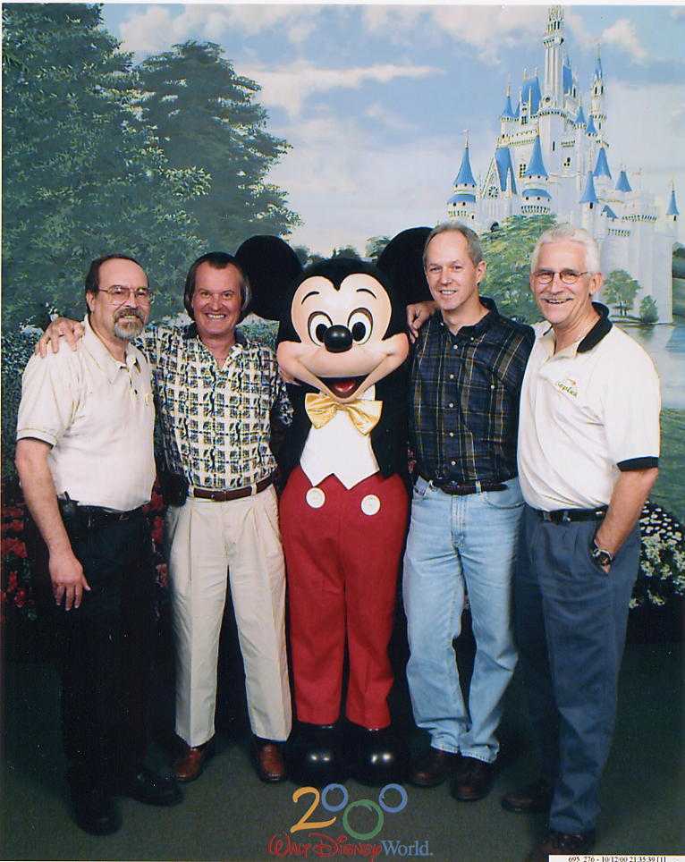 We had a mini reunion last week here in Orlando. Pete Coble and his family came down to visit Mickey. Ray Pierce, Vic Munn, and myself met up with Pete for dinner. Seeing's how no one remembered to bring a camera, we decided to take advantage of the surroundings and get our picture taken with Mickey. Definitely topped off an already great evening and recorded it for posterity.