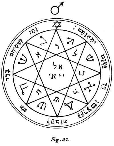 Figure 29.--The Fifth Pentacle of Mars.--Write thou this Pentacle upon virgin parchment or paper, because it is terrible unto the Demons, and at its sight and aspect they will obey thee, for they cannot resist its presence.