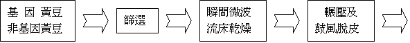 粗碎低溫豆粕 → 70%以乙醇溶劑粹取 → 分離溶劑回收 → 純化 → 真空濃縮 → 噴霧乾燥。