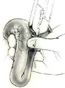 TRATAMIENTO 15 Para construir el reservorio ileal se realiza una anastomosis latero-lateral de un asa de ileon terminal.El uso de una grapadora GIA facilita esta anastomosis. |