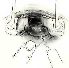 TRATAMIENTO 17:FASE PERINEAL La fase perineal comienza infiltrando suero salino con epinefrina al 1:200.000 en la mucosa rectal a nivel de la linea dentada.Esta maniobra facilita la separaci�n de la mucosa rectal de las capas musculares del recto.Adem�s la epinefrina disminuye la hemorragia. |