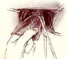 TRATAMIENTO 6 Se comienza la disecci�n del recto incindiendo el peritoneo p�lvico. |