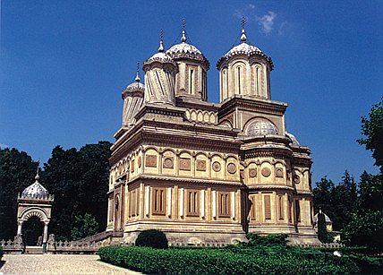 Printre cele mai vechi asezari ale tarii se numara si Curtea de Arges cu imprejurimile ei. In secolul al XIII-lea inalta cetate a Poenarilor, cu fortificatiile sale de piatra si putul care o lega direct cu albia râului de jos, facuse sa ajunga, pâna departe, faima acestor locuri; iar pe la jumatatea secolului al XIV-lea curtea Basarabilor si biserica "Sf. Nicolae Domnesc" rasfrâng aceasta faima asupra intregii asezari adunata cu timpul in preajma lor: Curtea de Arges de mai târziu. Dupa documente si inscriptii, ca si din marturiile sapaturilor arheologice, istoria acestui vechi tinut voievodal, chiar daca nu consemneaza data precisa când s-au grupat aici primele centre locuite, face insa dovada ca: aceste centre s-au dezvoltat indeajuns de repede, pentru ca, pe la jumatatea secolului al XIV-lea sa ateste deopotriva cu existenta unui scaun Domnesc si pe aceea a unei insemnate organizari bisericesti. Dintre monumentele care au fost faurite de-a lungul veacurilor, din câte au impodobit Argesul voievodal, biserica inaltata de Neagoe Basarab (1512-1521) este cea mai valoroasa constructie de arta si arhitectura bisericeasca. Inceputa in 1514 din dorinta lui Neagoe Basarab de a crea un monument neobisnuit, lucrarile ei s-au incheiat trei ani mai târziu. Din lipsa de bani, cu toata ca a sacrificat bijuteriile sotiei sale, dar si din lipsa de timp, zugravirea bisericii n-a putut fi terminata inainte de decesul lui Neagoe Basarab. Ginerele lui Neagoe Basarab, Radu de la Afumati (1522-1629) a ordonat continuarea decorarii asezamântului, prin dispozitia din 10 septembrie 1526, care mentioneaza si numele lui Dobromir zugravul. Neagoe Basarab a cladit biserica pe fundatiile unui locas mai vechi, sediul primei Mitropolii a Tarii Românesti. Biserica este alcatuita dintr-un pronaos, contopit cu constructia propriu-zisa, ai carui stâlpi interiori sustin o turla pe mijloc, cu doua turnulete laterale, care incununeaza fatada de vest a bisericii. Restul bisericii si altarul - cu abside care ii implinesc forma de cruce - sustin de asemenea o turla inalta, a carei imbinare cu ansamblu se face prin bolti. In fata intrarii se afla un aghismator deschis, sprijinit de patru coloane, lucrat din marmura de felurite tonuri si desene.