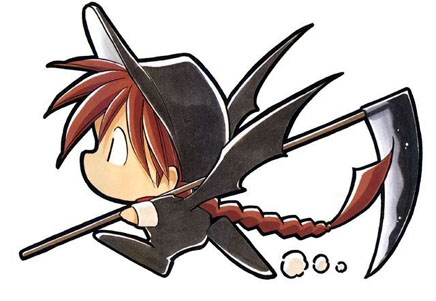 | Duo wasn't always the Duo we have all grown to know and love. Well, actually, he was... Even as a kid, Duo was loud, rambunctious, and cool. (And he was SO kawaii! Still is.) Anyway, what I meant was that he wasn't always the pilot of Deathscythe. His name wasn't even Duo! In the Episode Zero magna, Duo's story started out showing our favourite little reggamuffin causing trouble, as usual. This isn't the beginning of his story though. Here is a (very) quick runthrough of Duo's story... Of course, his name was Duo in the beginning of this story, but it wasn't his real name. He adopted this name for himself after his friend Solo died. He was a war orphan living with a group of kids who weren't unlike himself. They stole food so that they wouldn't starve, and were always running from angry people. They continued to do this until they happened to steal from the wrong people. They stole from the army, and when they got caught, the army sent them to live at the Maxwell church. (Hence his last name.) This is where he recieved his infamous braid. Sister Helen wanted to cut off all his hair to make him look more clean, but Duo wouldn't have it. It was bad enough that he had to wear those weird clothes, he sure as heck wasn't gonna put up with having his hair cut! So, Father Maxwell told Sister Helen to do as Duo wanted, and didn't cut, but braided his hair. All of Duo's friends got adopted at some point, but poor little Duo kept getting 'returned' to the church. It must have been because he was a little too crazy for anyone to handle. He even put kids in the hospital! (The kids said he smelled dirty.. I would too! The brats.) In this story is also where we learn about Duo's God, Shinigami. Duo said he doesn't believe in God's existence, because if he DID exist, he should stop the war, and that he believed in Shinigami (God of Death) because he'd never seen a miracle, but he'd seen lots of dead people! (So kawaii!!) Anyway, the war reached the church, and Duo saw that Father Maxwell and Sister Helen were in trouble. He decided to try to save them by getting what the army guys needed to try to make them go away; a mobile suit. He offered to steal it for them, and ran off to find one. When he returned, it was to an awful sight. The church had been under attack, and Father Maxwell had died. Sister Helen had just enough time to say a few words of encouragement to Duo before she passed away as well. The fact that he was able to be the lone survivor of the Maxwell Church earned him the name 'Maxwell's little demon'. Which he quickly changed to Shinigami. There. Finished. So much for a short runthrough! Anyway, here's some more stuff... |