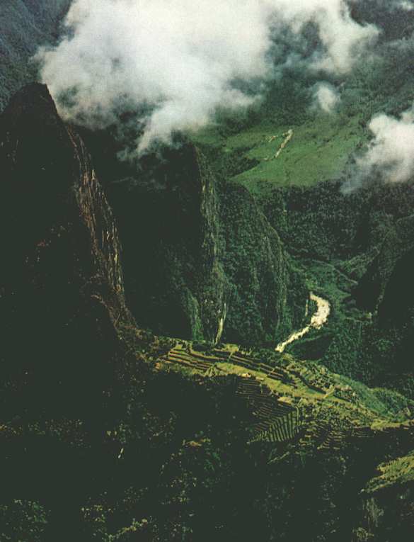 Es imposible imaginar Machu Picchu sin su espectacular entorno natural. Orquídeas y bromelias que florecen entre las piedras labradas, y las verdes montañas circundantes sirven de imponente marco a la ciudadela. |