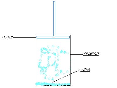 en el fondo un poco de agua y estando el piston en la parte inferior del