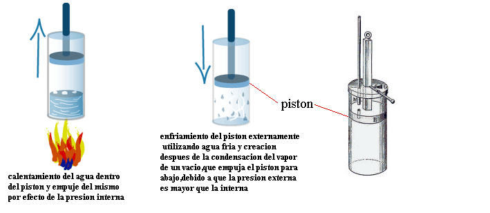 de fuego,al entrar en ebullicion,la presion del vapor empuja al piston hacia