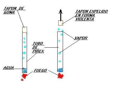 entrar en ebullicion y luego al tapon de goma salir expelido en forma violenta