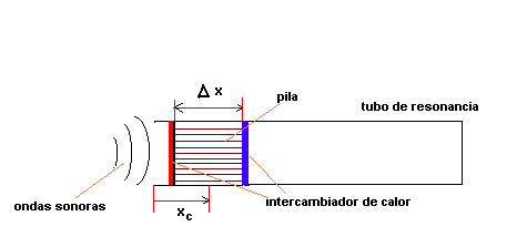 El siguiente dispositivo utiliza una onda acustica estacionaria para bombear calor a una distancia de aproximadamente 5 centimetros, generando una diferencia de temperatura de aproximadamente 10 grados de centigrado. Un dibujo del sistema se muestra a continuacion,