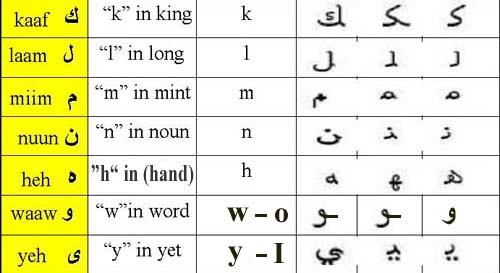 5-in Arabic language there are just 3 vowels and they are all with long sound : alif,= /a:/ ------- like �a� in �cat� yaa= /i:/ -------- like �ee� in �been� waaw =/u:/ ----------- like �oo� in �moon�