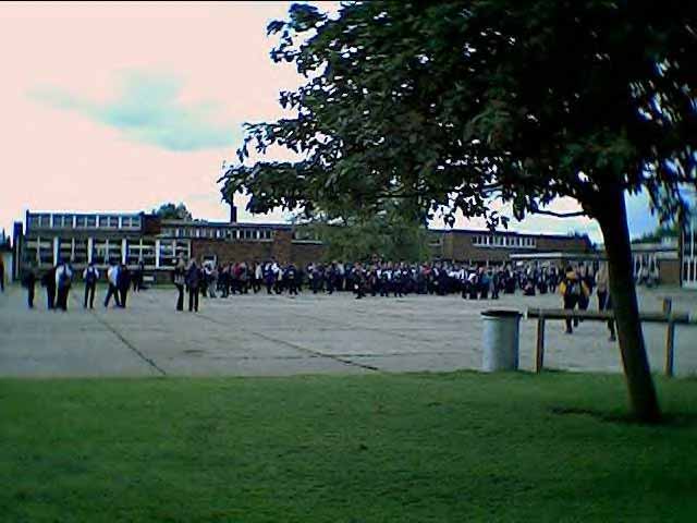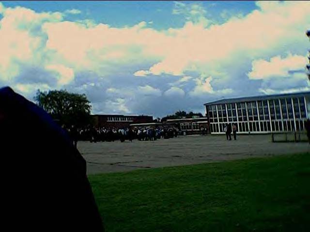 | Here are two pictures of my school. You can see a big group of people who are watching a fight. (It doesn's happen very often) | ||||||||||||