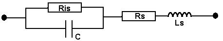 É formado além de um capacitor ideal C, por outros três elementos: a resistência de isolação (Ris), a resistência série (Rs) e a indutância série. A Rs é formada pela resistência das folhas das armaduras, resistência de contactação do terminal a folha e resistência dos proprios terminais do capacitor. Os materiais dielétricos que vão inseridos entre as placas dos capacitores podem ser