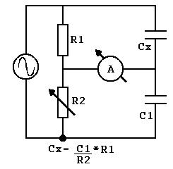 Ajusta-se o valor de R2 até que o amperimetro marque zero (quando isso acontece a ponte esta em equilibrio), dai basta medir o valor de R2 com o ohmimetro e calcular o valor do capacitor com a formula. O valor de R2 deve ser escolhido de acordo com a faixa de valores que se quer medir.