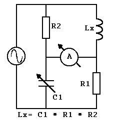 Ajusta-se o valor de C1 até que o amperimetro marque zero (quando isso acontece a ponte esta em equilibrio), dai basta medir o valor de C1 com o capacimetro e calcular o valor do indutor com a formula. O valor de C1 deve ser escolhido de acordo com a faixa de valores que se quer medir.