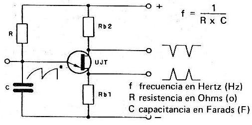 Para um oscilador de relaxação com transistor de unijunção a formula para calcular a frequência é: