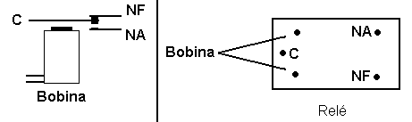 mais comum dos contatos dos relés (direita).
