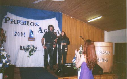 Guillermo y Claudia recibiendo el premio "Agatha 2001" al mejor programa de radio en el rubro "Programas de Rock" (Wanda - Misiones - 04/08/01)