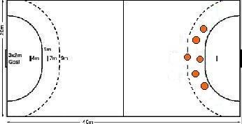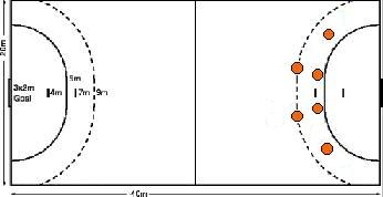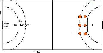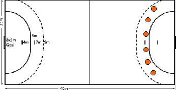 Sete Metros No momento da cobrança de um tiro de sete metros, o goleiro poderá movimentar-se da forma que desejar, não podendo porém, ultrapassar a linha de 4 metros que limita seu deslocamento nessa situação. A escolha de como tentar realizar a defesa é pessoal de cada goleiro, não tendo uma forma específica para sua realização.