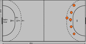 SISTEMA DEFENSIVO POR ZONA 6 X 0: No sistema defensivo 6 x 0 , temos uma ótima defesa, pois não permite uma movimentação livre do pivô contrário, tendo como ponto forte defensivo o centro da área, porém deve ser utilizado quando o adversário não possui bons armadores que arremessem forte da área de tiro livre.