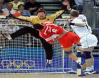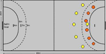 O GoleiroO goleiro é vital na defesa. Um bom goleiro pode representar mais de 50% da performance de um time. Estes devem ser fisicamente grandes, muito fortes, rápidos e com muita concentração. Esses jogadores ainda possuem a habilidade de detectar o foco do ataque e se adaptar as mudanças nas jogadas. Defensores situados no meio precisam ser muito fortes e altos para impedir os ataques dos meias e conter os pivôs. Quando a defesa é penetrada, o goleiro é a ultima barreira ao atacante. Ele precisa ter um reflexo rápido, boa antecipação de onde o atacante pretende arremessar e habilidade de ajustar força, reflexos e total concentração (eliminado qualquer coisa que não seja referente ao jogo) focando seu objetivo final, a defesa. O goleiro também deve se comunicar com seu time, (pois possui maior visão de jogo por estar fora dos lances de ataque) incentivando e alertando a defesa; e auxiliando e orientando seus companheiros no ataque. O goleiro não é apenas um jogador de defesa, mas um importante armador de contra-ataques. O goleiro tem como principal função impedir que a bola entre pela baliza caracterizando assim o gol adversário. Para realizar tal função, como os jogadores de linha, os goleiros também necessitam de técnicas especiais de posicionamento e deslocamento assim como qualidades físicas específicas. Há algum tempo sua função dentro do jogo tem se estendido a iniciar ataques também.