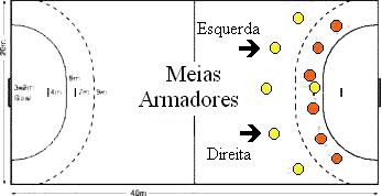 O "combustível" do time no ataque. Os meias geralmente possuem os mais fortes arremessos e são, geralmente, os mais altos jogadores do time (no masculino variam de 180cm a 210cm e no feminino variam de 175cm a 190cm). Entretanto existem excepcionais jogadores que são menores que a média, mas possuem arremessos poderosos e técnica muito apurada. Estes são geralmente os jogadores mais perigosos durante o ataque, pois os arremessos costumam partir deles ou de outro jogador o qual tenha recebido um passe dele. Estes jogadores normalmente são altos e vigorosos, possuidores de grande força no arremesso em suspensão e nos arremessos especiais. Devem dominar a recepção dos passes rápidos, assim como dar continuidade às jogadas especiais; ter como recurso a utilização das fintas e sua ligação às ações técnico-táticas complexas com o pivô e arremessos ao gol. Com seu posicionamento afastado, são capazes de assegurar um equilíbrio defensivo à sua equipe. Em verdade, são os primeiros jogadores a partir para a formação da defesa, retomada da posse de bola e, por do contra-ataque.
