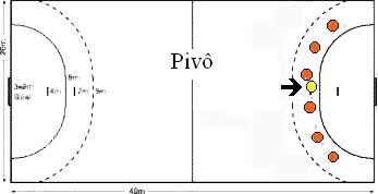 O Pivô Seu objetivo é abrir espaço na defesa adversária para que seus companheiros possam arremessar de uma distância menor, ou se posicionar estrategicamente para que ele mesmo possa receber a bola e arremessar em direção ao gol. O pivô possui o maior repertório de arremessos do time, pois ele deve passar pelo goleiro e marcar o gol geralmente sem muita força, impulsão ou velocidade, e em jogadas geralmente rápidas. Os pivôs posicionam-se entre as linhas dos 6 e 9 metros, próximos à área de gol. Normalmente são jogadores rápidos, vigorosos e de grande habilidade que o possibilite livrar-se da marcação constante que recebe. Não se faz necessário ao pivô deter grande estatura, em contrapartida há de ter grande ímpeto e desejo de jogar e “furar” a marcação. Em movimentos rápidos e hábeis e com uma posição livre, devem receber a bola com segurança e arremessar ligeiramente ao gol. Além dos arremessos especiais do pivô (arremesso em suspensão, em queda, salto com queda), eles devem dominar arremessos como: de reversão, de reversão com queda, de percussão aérea. Deve ainda, prender pelo menos um jogador (bloqueá-lo), ajudando os arremessos de longa distância e jogadas dos meias.