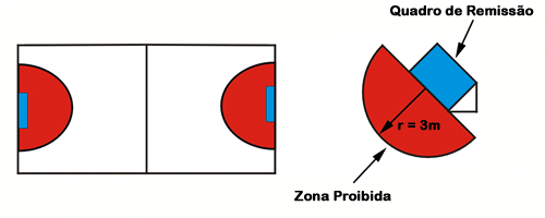 superfície de remissão (quadros de 1 x · Cada superfície de remissão é colocada atrás (no centro), da linha de fundo do terreno de jogo. Zonas Especiais