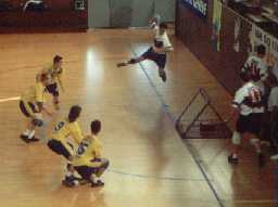 arremessar a bola sobre um dos quadros de remissão. A outra equipe
