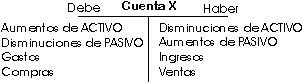 Ahora bien, ¿en qué momento debemos poner una cantidad en el DEBE o en el HABER? ¿Cómo sabemos, por ejemplo en la cuenta de PROVEEDORES si la cantidad la tenemos que colocar en el DEBE o en el HABER? Todo dependerá del tipo de cuenta que sea. Observa el siguiente esquema: