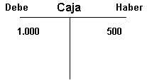 La cuenta se representa en forma de T . Cuando en una cuenta anotamos una cantidad en el DEBE, se dice que estamos haciendo un CARGO. Cuando es en el HABER, se dice que estamos haciendo un ABONO. Por ejemplo, vamos a realizar un CARGO en la cuenta de CAJA de 1.000 pesos y ahora un ABONO de 500 pesos en la misma cuenta: