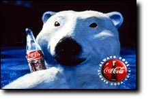 | Above are two ads from the 1950's. Below are two ads from 2003. Some similarities include the Coca-Cola logo and the presentation of its product in the ads. The use of animals is a new feature in the 2003 ads which would make the ad more appealing to people of all ages. The catch phrase is also different in each ad. |