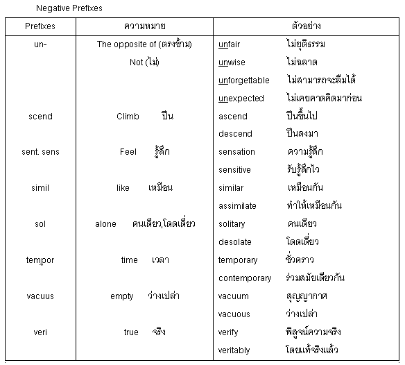 (Prefixes)และตัวประกอบท้ายคำ (Suffixes)