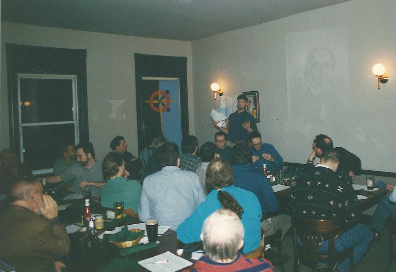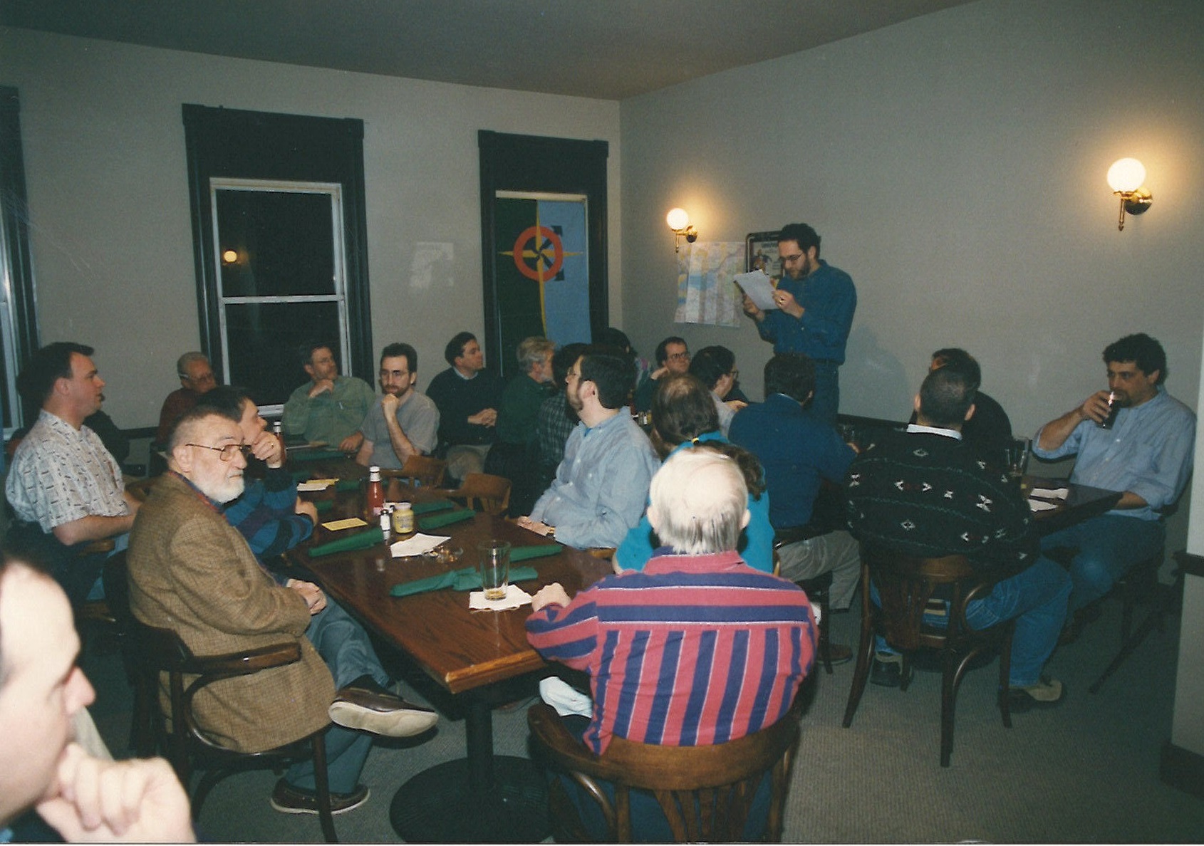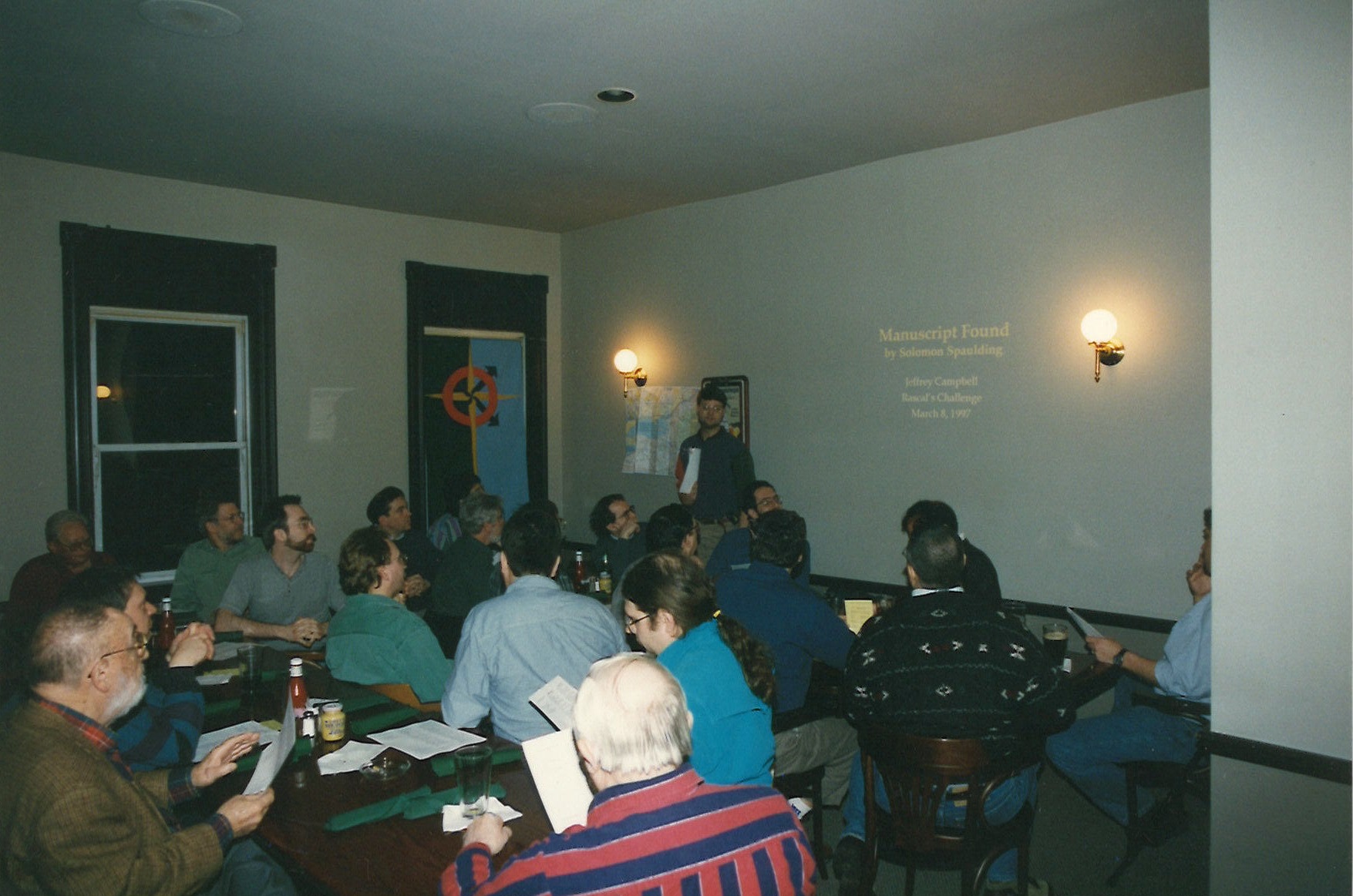 This meeting was the first and only meeting of the RR&R at Aussie's Downunder Pub and Grill, 4617 Liberty Avenue in Bloomfield, and was held on March 8, 1997. Jeff Campbell had been challenged to bring back the story on Solomon Spaulding and his book, Manuscript Found as a possible source of the Book of Mormon.