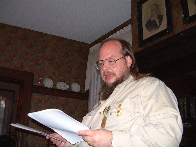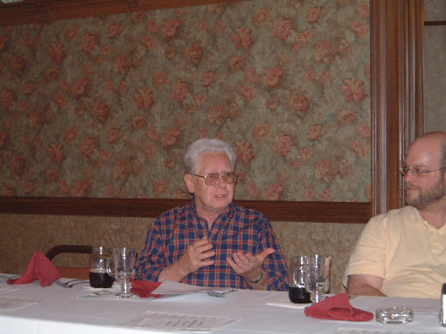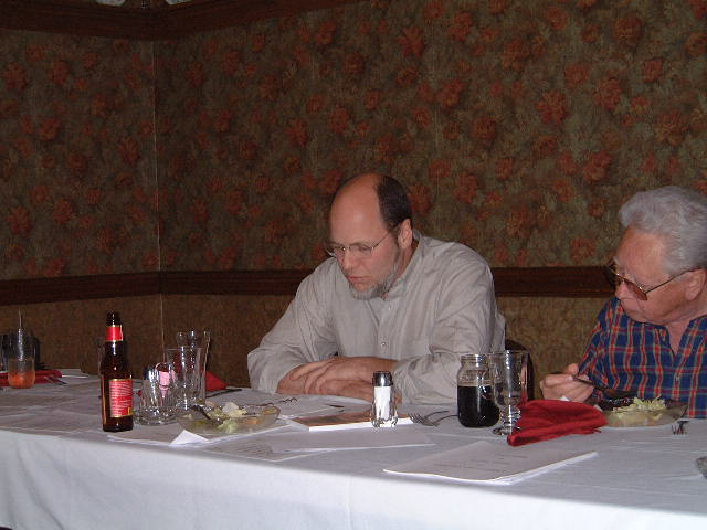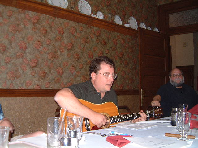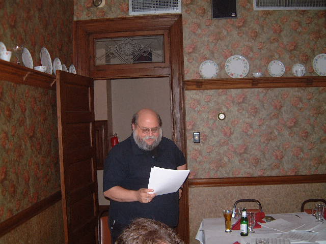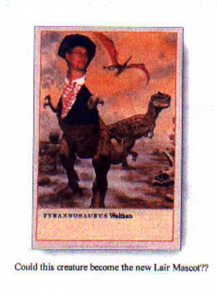10. Tarbosaurus efremovi, a relative of Tyrannosaurus rex. Last, but still least, Tim Esaias made a poetic presentation entitled "I Sing of Teeth and the Mascot" in a vain attempt to turn the Lair toward a massive, meat-eating, yet somewhat extinct candidate. He read "Stopping by Max’s on a Rascal Evening", "Four Clerihews on Those I Did Not Choose" and "Why the Megaphone was Late" to a dumbstruck, disbelieving audience. Woody Cunningham did his best to rescue the floundering Esaias by leading the group in a rousing rendition of "The Last ‘Osaur" but the whole Mass Challenge ground to an abrupt halt with this unpromising episode.