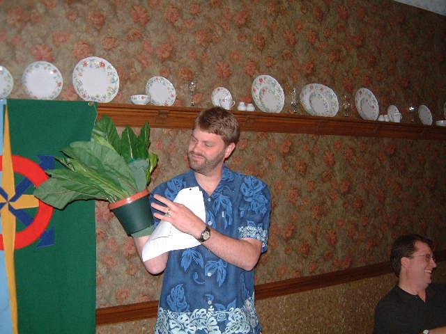 4. Mylodon, the Giant Ground Sloth. Ron DiOrio began by decrying the difficulty of determining the proper initials with a name like his, and settled therefore on M (for "Me") and hence chose this massive megatherium. He gave a well-reasoned Paperpoint presentation enumerating the top ten reasons in favor of choosing the giant ground sloth. Importantly he argued that it was named after a Rascal virtue, but the key reason (which he proved by a trophy of his pursuit of Sabrina Ferelli)(or, rather, hers of him) offered was "Attracts women. Many women have said they ‘love a man who has a giant sloth.’" A Patagonian connection also buttressed an impressive argument.
